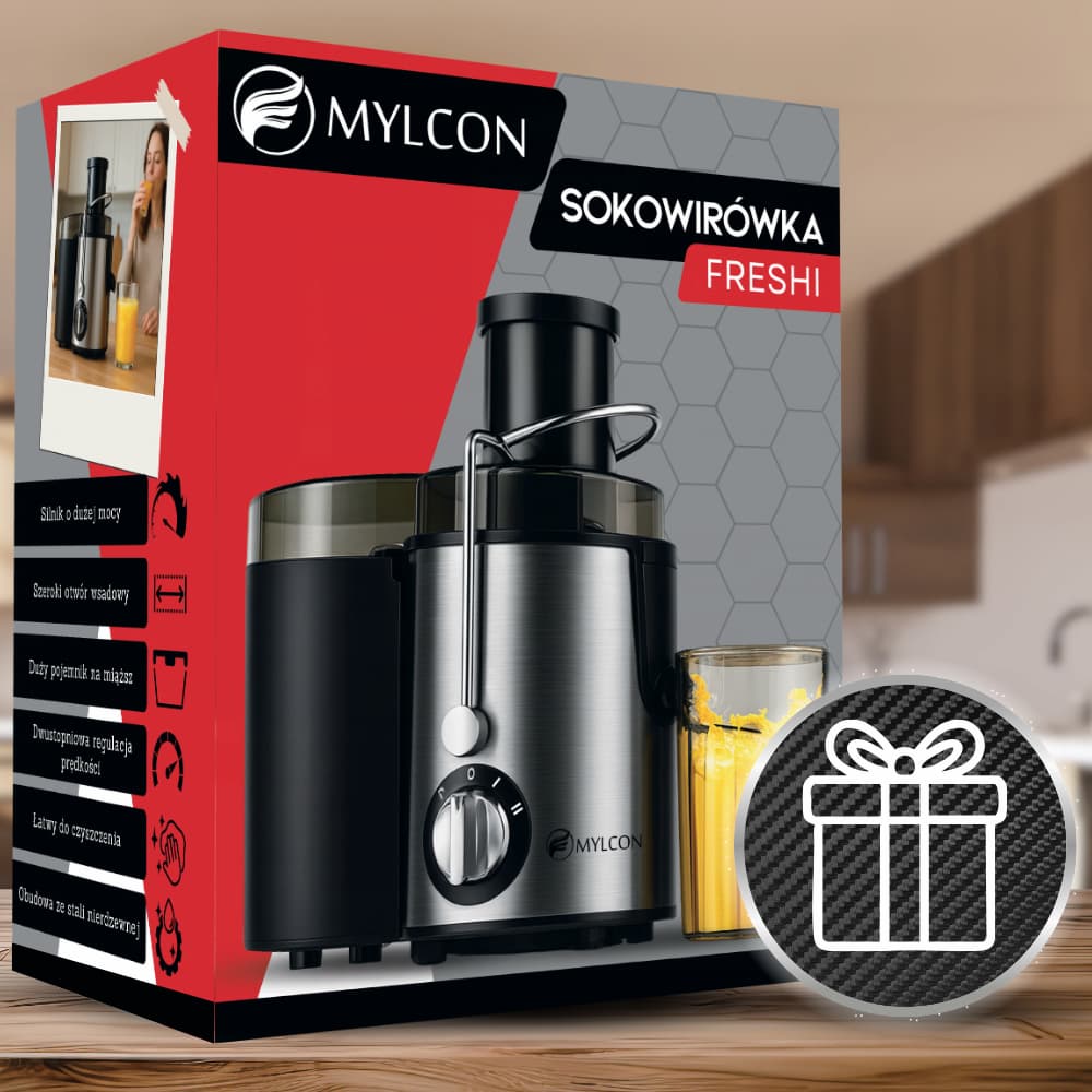 MYLCON Freshi to świetny wybór dla osób, które chcą przygotowywać świeże soki szybko, wygodnie i w dużych ilościach. Doskonale sprawdzi się w kuchniach rodzinnych, u aktywnych osób dbających o zdrowie, a także u użytkowników ceniących prostą, lecz wydajną konstrukcję.