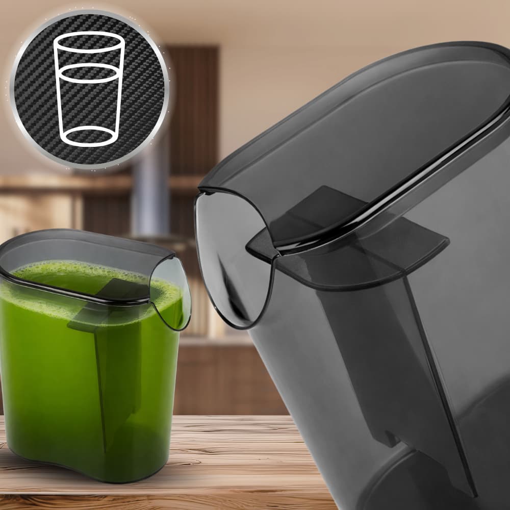 - Duże pojemniki: zbiornik na sok 800 ml oraz na miąższ 1,5 l umożliwiają dłuższą pracę bez przerw.