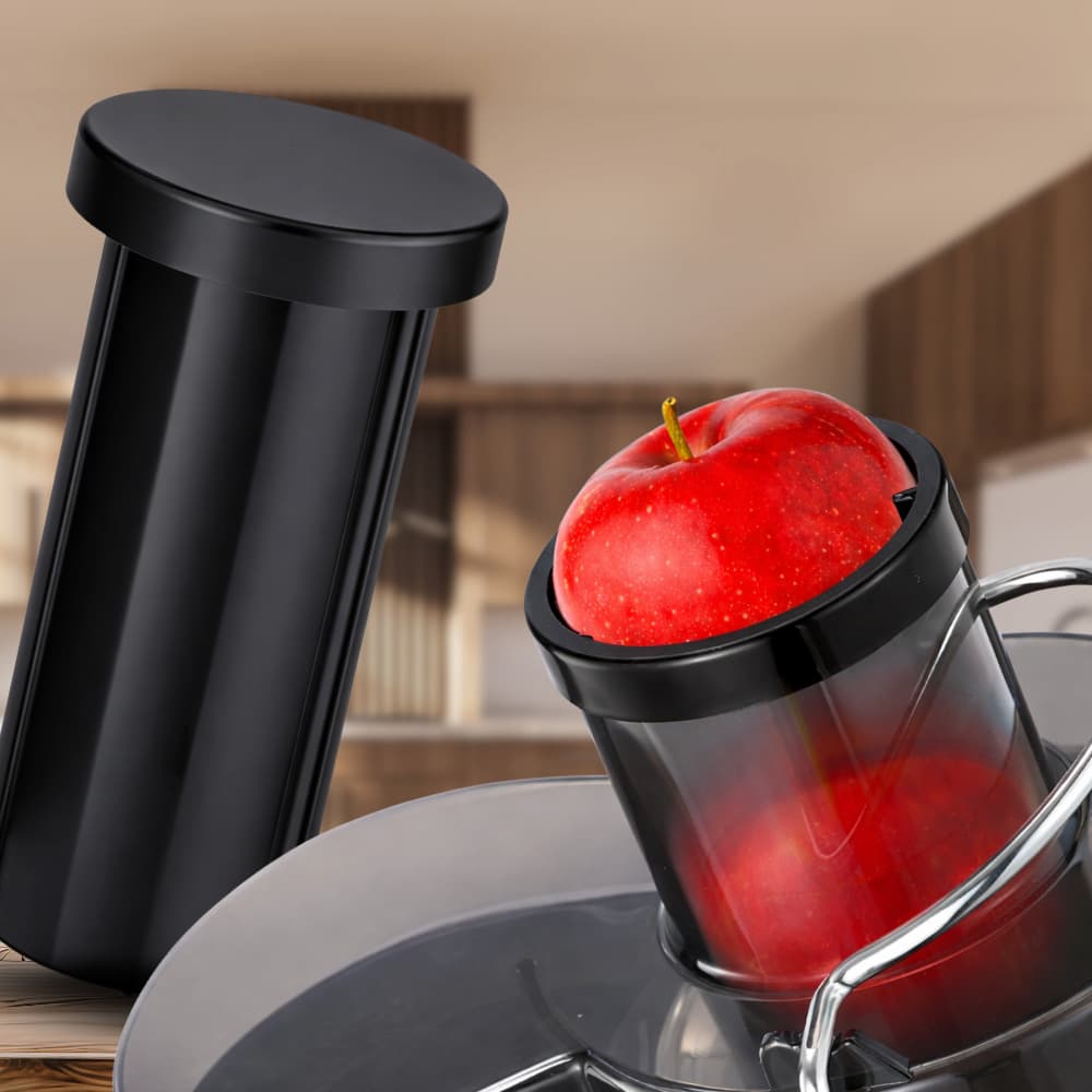 Sokowirówka została zaprojektowana tak, aby codzienne korzystanie było maksymalnie proste i wygodne. Pojemny pojemnik, szczelna konstrukcja oraz ergonomiczny popychacz zapewniają płynną pracę nawet przy dużej ilości owoców i warzyw.